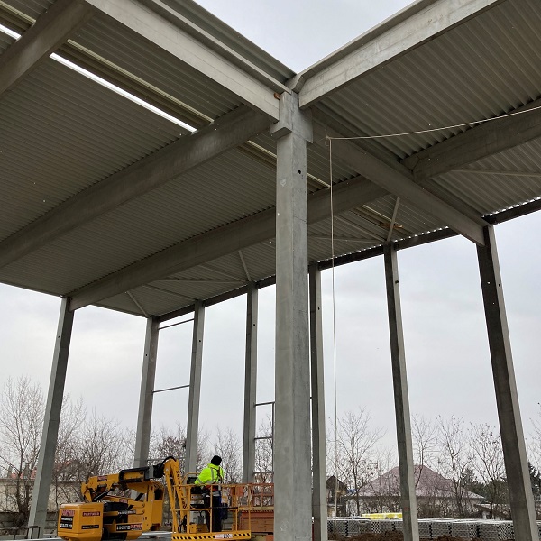 A logisztikai feladatokat ellátó csarnok teljes alapterülete 5.900 m². Négy egymással párhuzamosan csatlakozó hajóból áll, melynek fesztávja 18 m és 24 m. Az épületet összesen 324 db előregyártott vasbeton elem alkotja. A szerkezetépítésnél felhasználtak 75 db pillért, melyek a gerendákat, tetőtartókat fogadják. A tetőszerkezet szerelése során 18 db főtartó és 44 db szelemen került beemelésre, a szabad belmagasság 11,8 m. A csarnok homlokzatán 308 fm hőszigetelt lábazati panel található. Az építkezésre kiszállított vasbeton elemek súlya összesen 1.925 tonna.