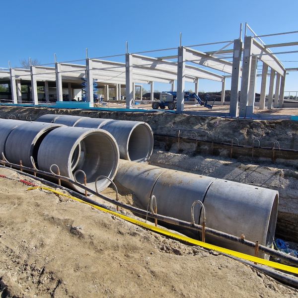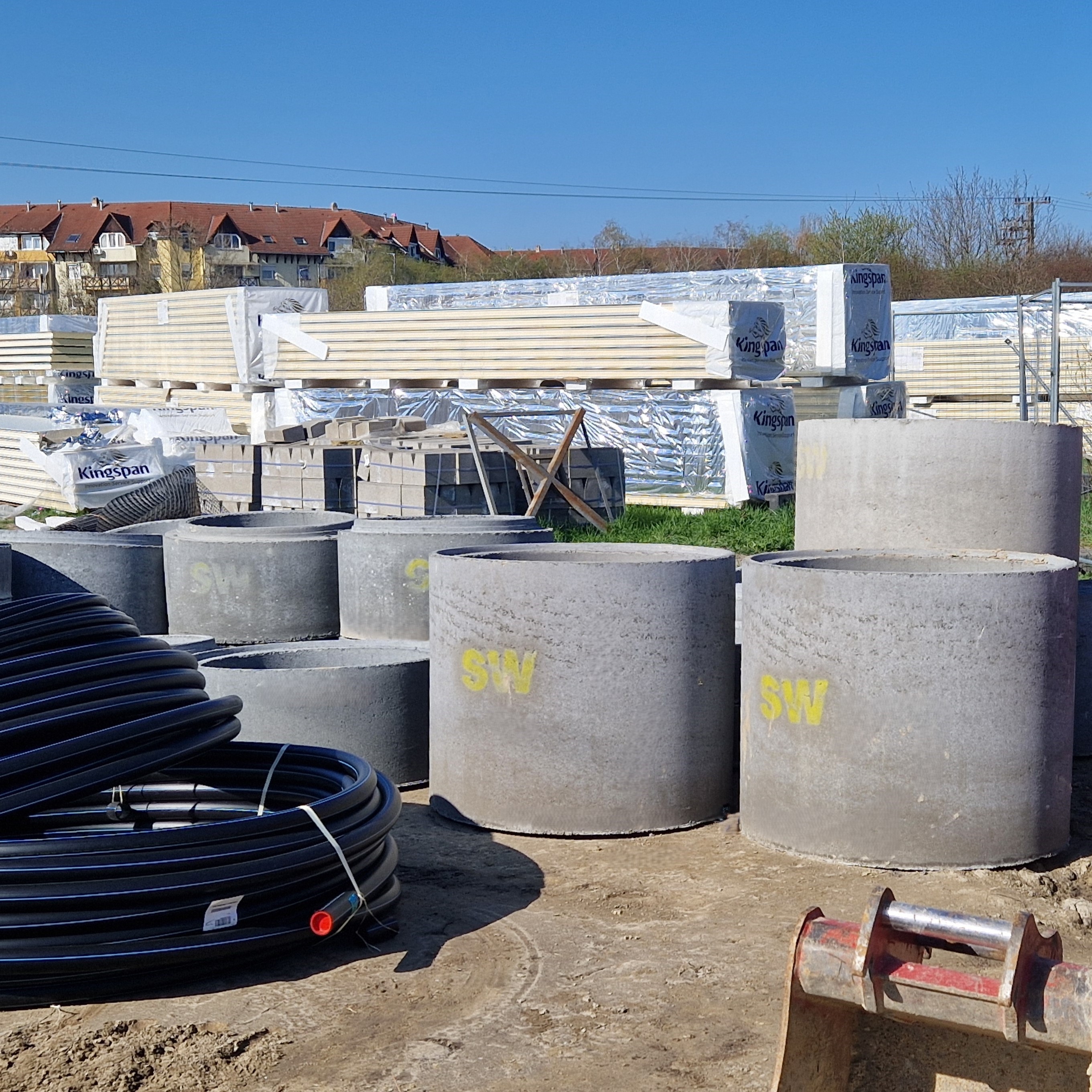 Új bevásárló udvar épül Komáromban. A kereskedelmi épületek építése során a kapcsolódó közműépítési kivitelezést a Közmű Profil Kft. végezte. A munkához szükséges víznyelőket és aknaelemeket (ø80 és ø100), valamint egy 600 m3 és egy 30 m3 méretű víztározót (ø240) az SW Umwelttechnik Kft. gyártotta.
