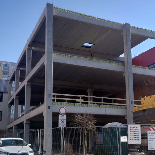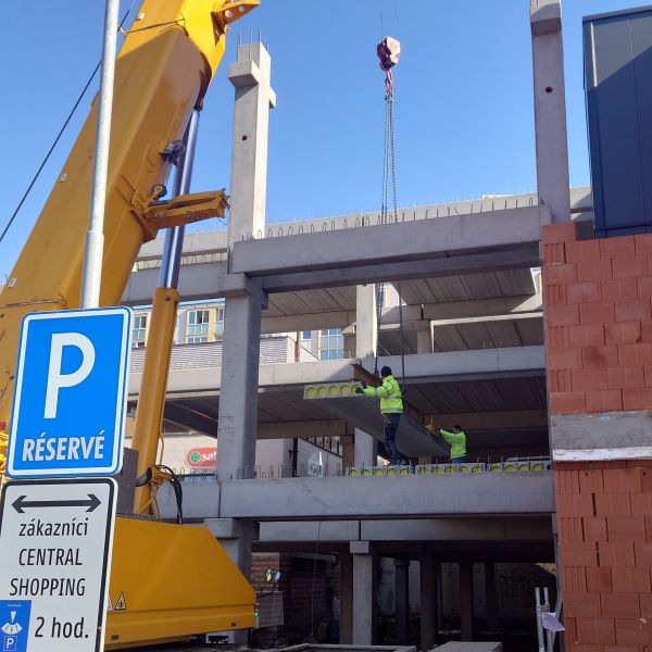 Részt vettünk a CENTRAL SHOPPING projekt megvalósításában, amely a kassai Ťahanovce lakótelep fő bevásárlóközpontja. Az újonnan épülő háromszintes épület helyi központként szolgál majd az itt lakók részére, ahol egy helyen találják meg a BILLA élelmiszerboltot, a TETA drogériát, gyógyszertárat, optikát, fodrászatot és további szolgáltatásokat. Az épület megvalósításához 265 mm vastagságú körüreges födémpanel gyártásával és szállításával járultunk hozzá, 1.430 m² összfelülettel. A panelek kiszállítása érdekében 23 kamiont biztosítottunk, melyek a kivitelezés során a nehezen megközelíthető munkaterületet is sikeresen leküzdötték.