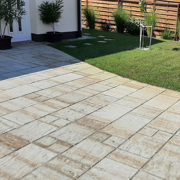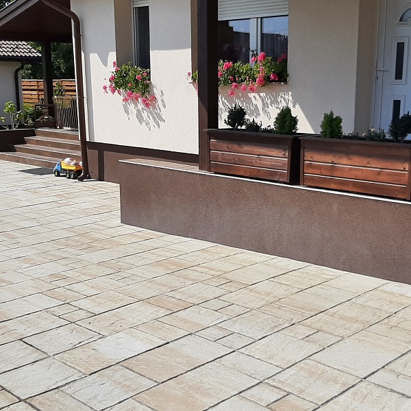 A síkságon lévő meleg színekkel operáló mediterrán designnal megálmodott házhoz tökéletes választás volt a prémium kategóriás Írottkő széna. Finoman követi a házra tervezett árnyalatokat, színeket, lágyan olvad bele a ház által generált harmóniába.