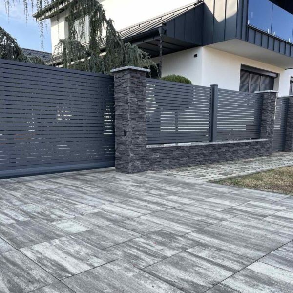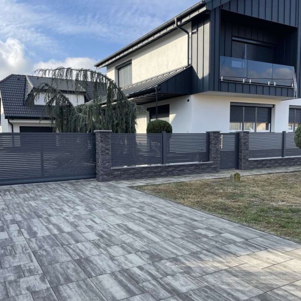 A teljesen felújított és újragondolt ház kertjének burkolatához 150 m² Zselickő holdeső SW Térkövet választott a Megrendelő. Az épület antracit árnyalataival harmóniában találkozik a holdeső szín, modern és exklúzív megjelenést kölcsönözve az összképnek.