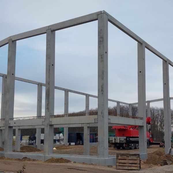 A seregélyesi hulladékdaráló üzem új csarnokot és irodát épít. A közel 1.000 m² alapterületű beruházás előregyártott vasbeton vázszerkezeti kivitelezésében vettünk részt. A 20 m fesztávú egyhajós csarnok 25 pillér, 19 hőszigetelt lábazati panel, 10 födémgerenda, 22 peremgerenda és 6 feszített szelemen felhasználásával épült fel, az irodarészen 120 m² szintosztó födém került beépítésre. Az építkezésre kiszállított betonelemek összsúlya 390 tonna.