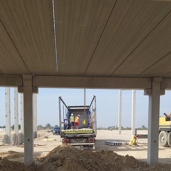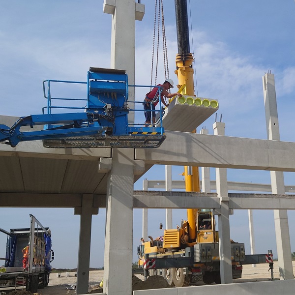 A nyugat - szlovákiai Vedrőd község közelében, a D1-es autópálya mentén fokozatosan terjeszkedik a CTP Voderady logisztikai park, amely immár jogosan büszkélkedhet az új VOD3 szerelő - és raktárcsarnokával. Nagy örömünkre szolgál, hogy a 265 mm vastagságú paneljeink gyártásával és szállításával hozzájárulhattunk az építkezéshez. Az új, kétszintes csarnokrész létrehozásához összesen 510 m² körüreges födémpanelt szállítottunk a helyszínre.