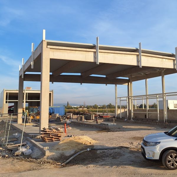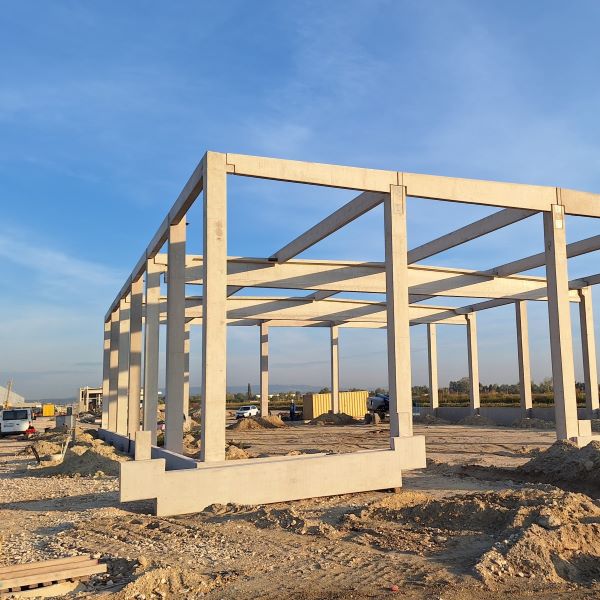 A szerkezetépítésnél elhelyeztünk 38 db pillért, melyek a gerendákat, tetőtartókat fogadják. A tetőszerkezetek szerelése során 21 db szelemen került beemelésre. Az épületek szabad belmagassága 6,5 m és 7 m. A homlokzatokon 200 fm lábazati panel található. Az épületeket összesen 170 db előregyártott vasbeton elem alkotja, melyek súlya összesen 657 tonna.