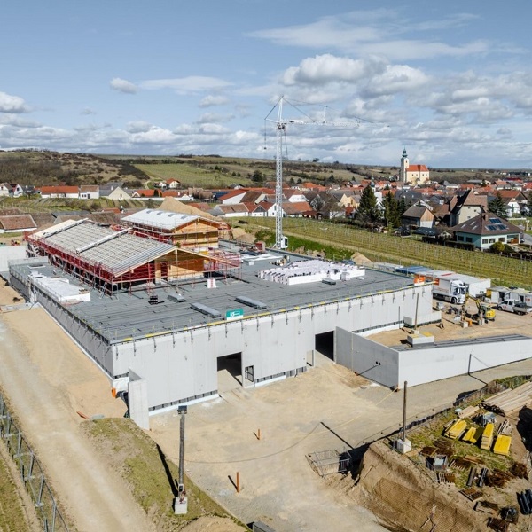 Röschitz a hűvös borvidékek közé tartozik és kiváló feltételekkel rendelkezik a szőlőtermesztéshez. A régió kristályos alapkőzete a hűvös éghajlattal együtt különösen elegáns, ásványos-fűszeres borstílust tesz lehetővé. Az itt található Gruber pincészet új épületének fő szempontja volt a környezetbe illeszthetőség. Ennek tükrében a raktári rész a földbe lett süllyesztve, a vendégek részére kialakított borterasz és bemutató terem pedig terepszinten, a szőlősorok közvetlen szomszédságában helyezkedik el. Cégünk gyártotta a 2 szinthez szükséges, több, mint 3000 m² körüreges födémpanelt, amely 120 kamionfuvarral lett helyszínre szállítva.