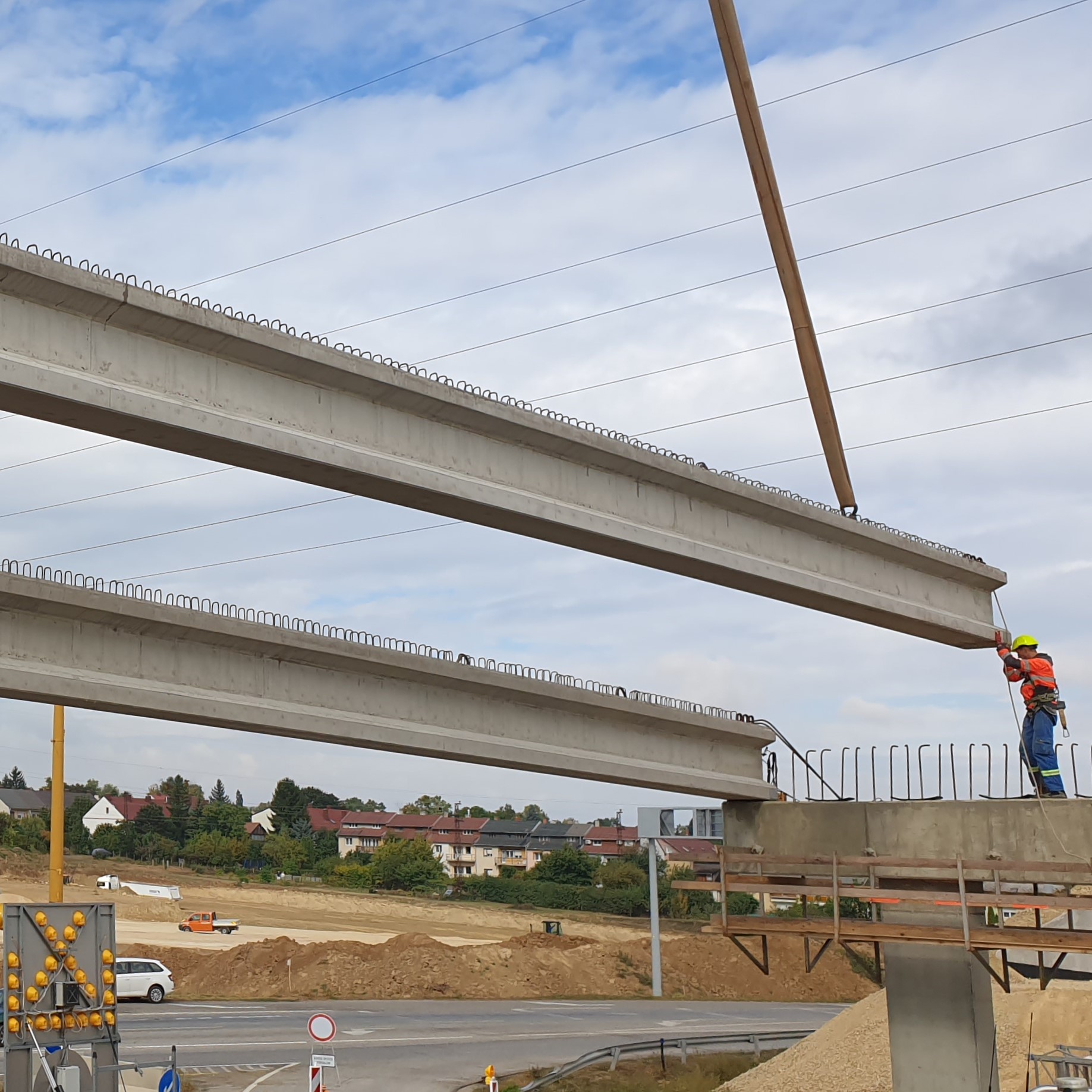 8. sz. főút Veszprém déli elkerülő szakasz Füredi csomópontjánál létesítendő közúti hídhoz gyártottunk 24,8 m hosszú SHI hídgerendákat. Az déli elkerülővel sikerült a 8-as út szűk keresztmetszetét megszüntetni. Ezáltal, főleg nyáridőben megszűnik az M7 autópályáról menekülő autósáradat torlódása és maga a város is élhetőbbé válik.