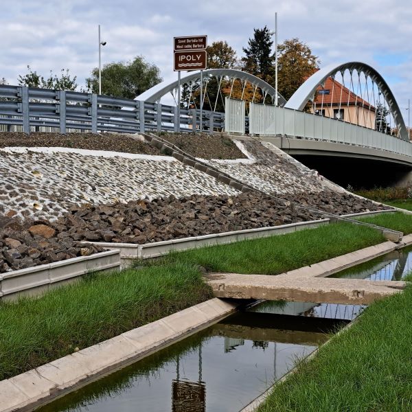 A Szent Borbála-híd Drégelypalánk és Ipolyhídvég között egy új határátkelési pontot képez Szlovákia irányába. A második világháborúban lerombolt eredeti hídszerkezet helyére egy 48,5 méter hosszú, gyalogúttal ellátott, szabad nyílású vasbeton pályalemezzel merevített, két főtartós alsópályás acél ívhíd került, amit a 3,5 tonna össztömeget meg nem haladó teherforgalom vehet igénybe. Cégünk a magyarországi csatlakozó úthálózat kivitelezéséhez szállított előregyártott vasbeton hüllőterelő elemeket 400 méter hosszban.