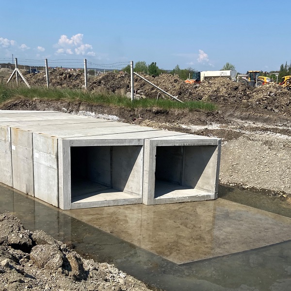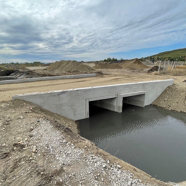 A 37-es út 9 – 27 km szelvény közötti 2 x 2 sáv kialakításához a normál vízépítési termékeken felül feladatul kaptunk egy egyedi méretű iker áteresz tervezését és legyártását. Külön érdekessége a projektnek az áteresz lezárását szolgáló egyedi támelem, ami méreténél és formájánál fogva kihívást intézett mind a gyártásnak, mind a szállítást és az elhelyezést végzőknek.