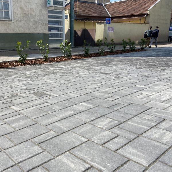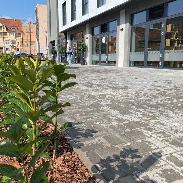 Az Expert Holocor Premium Kft. irodaháza előtti teret Maroskő hamu és holdeső színű térkövünkkel burkolták összesen 270 m² területen. Ez az elegáns kombináció modern és letisztult megjelenést nyújt a környezetnek, harmonikusan simulva egy prémium irodaépület arculatához.