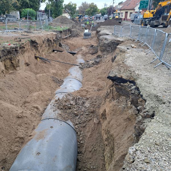 Esztergom egyik legveszélyesebb közlekedési csomópontjának átépítésénél az első ütemben a Dobogókői – Petőfi – Terézia - Kálvária utak találkozásánál létesülő körforgalomhoz egyéb kivitelezések is kapcsolódtak: gyalogos átkelőhelyek, 370 méter hosszban útfelújítás, közművek modernizálása. A jelenlegi szakaszban közel 400 méter új ivóvíz- és 635 méter új elektromos vezetéket építettek ki. A csapadékvíz-elvezető téglaboltozatos csatornaszakasz helyére 160 centiméter átmérőjű vasbeton csapadékcsatornát alakítottak ki 110 méter szakaszon a Terézia út irányába. A nagyátmérőjű csapadékcsatornához további 125 cm és 100 cm átmérőjű ágakkal csatlakozik a Dobogókői út és a Kálvária út vízelvezetése.