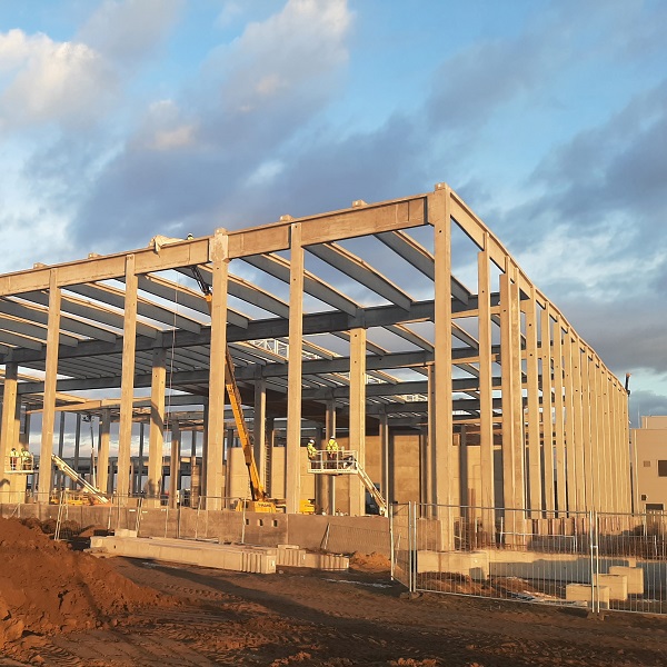 A 16.000 m² feletti alapterületű épületek tetőszerkezetét több mint 320 db feszített tetőgerenda alkotja. A WHB épület jellemzően 18m fesztávú hajókból áll, a közepén egy Penthouse résszel. Ezen a szinten 36 db feszített födémgerenda fogadja a rákerülő 1.100 m² BNP panelt. A szerkezetbe 149 db 30 tonna feletti pillér is beépítésre került, a csarnok homlokzatán 600 fm hőszigetelt lábazati panel található. Az építkezésre kiszállított vasbeton elemek súlya összesen 8.000 tonna.