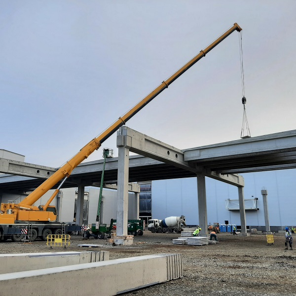 A LEGO új üzemének építésében vállalatunk a PAB2 épület előregyártásában vett részt. A több, mint 9.000 m² alapterületű épület tetőszerkezetét 150 db feszített tetőgerenda alkotja. A szerkezet 24 m és 26 m fesztávú hajókból áll, közepén egy Penthouse résszel, melyen 21 db feszített födémgerenda fogadja a rákerülő 1.000 m² BNP panelt. Az épületben lévő monolit lépcsőházba előregyártott lépcsőkarok kerültek. A csarnok homlokzatán 200 fm hőszigetelt lábazati panel található. Az építkezésre kiszállított vasbeton elemek súlya összesen 5.000 tonna.