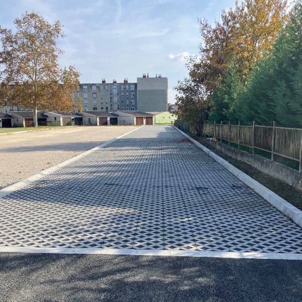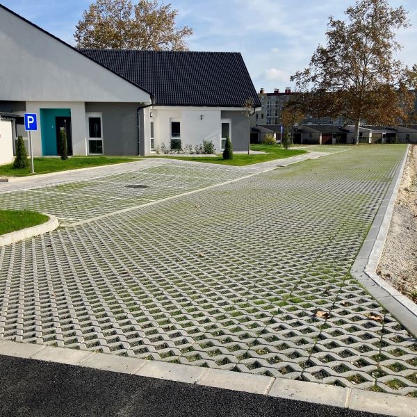 Lenti településen egy gépjármű-parkoló burkolásához praktikus megoldásként az SW Umwelttechnik Kft. gyeprács kövét használták 600 m² területen. A gyeprács ideális választás azok számára, akik a zöldfelületek megőrzése mellett stabil és strapabíró burkolatot szeretnének. Remek vízáteresztő képessége segíti a csapadék elvezetését, miközben természetesen illeszkedik a környezetbe, megvalósítva a funkció és az esztétika tökéletes egyensúlyát.