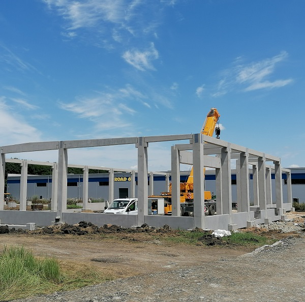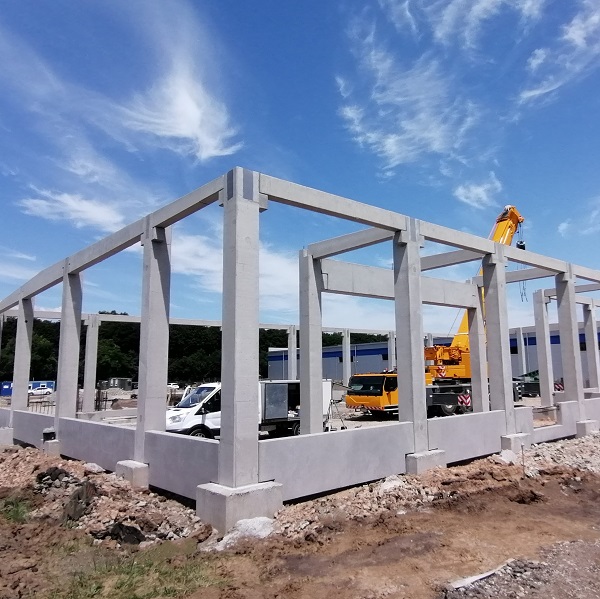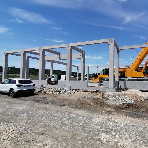 Az autóipar egyik jelentős márkaképviseletéhez tartozó projekt kivitelezésében vehettünk részt. A tárgyi projekt három különálló épületrészből - szalon, szerviz és mosó - áll. A kivitelezés részben előregyártott vasbeton elemekből, részben pedig monolit szerkezetből tevődik össze. A teljes alapterület együttesen 2.800 m². Az épületet 274 db előregyártott vasbeton elem alkotja. A szerkezetépítésnél felhasználtak 65 db pillért, melyek a gerendákat, tetőtartókat fogadják. A tetőszerkezet szerelése során 14 db szelemen került beemelésre, melyek 21 méter fesztávval rendelkeznek. Az épületek homlokzatán összesen 260 fm hőszigetelt lábazati panel található. Az építkezésre kiszállított vasbeton elemek súlya összesen 950 tonna.