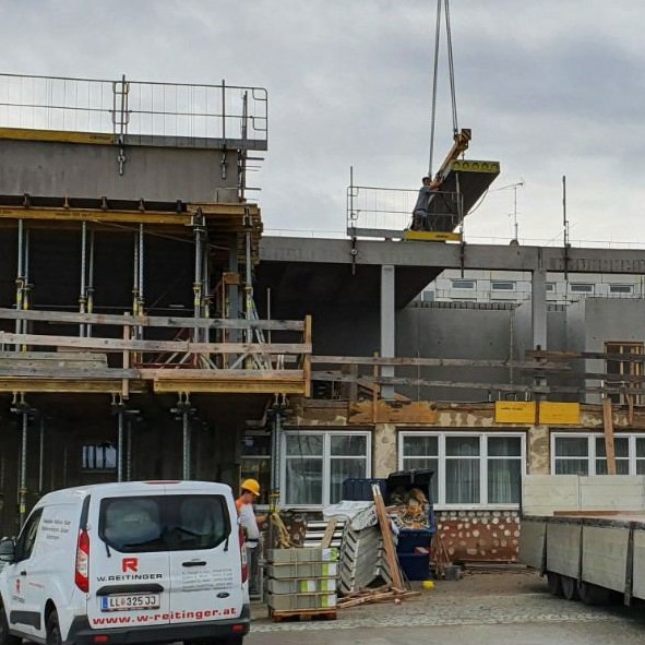 Ausztriába, Hollabrunn városának északi részén található Raiffeisen Lagerhaus raktárkomlexum irodaépületének felújításához és bővítéséhez gyártottunk-szállítottunk 700 m² MF265 födémpanelt. A közel 40 éves épület műszaki felszereltsége és mérete már nem tette lehetővé a mai kor igényei szerinti kiszolgálást, így a tetőszerkezetet elbontották és egy teljesen új emeletet építettek rá, ahol helyet kaptak új irodák, tárgyalók és szociális helyiségek.