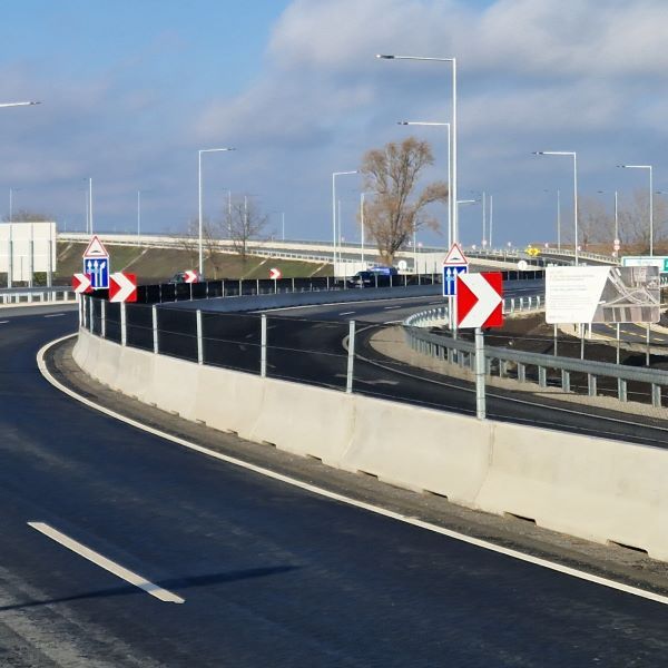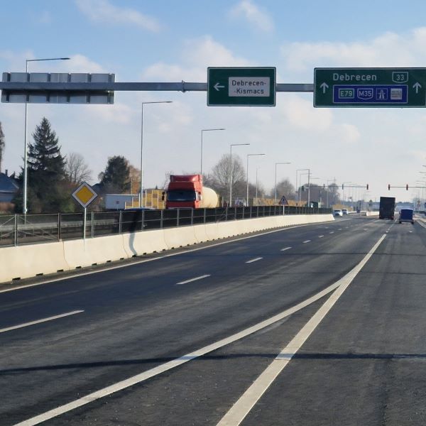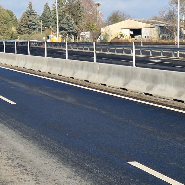 A 33. sz. főút 2x2 sávosítása keretében forgalomtechnikai kivitelezést koordináltunk. A kiviteli terv és a műszaki leírás követelményeinek megfelelően a Rebloc-elemek telepítéséhez az egyes szakaszokon 4m és 8m hosszú elemeket használtunk, míg az egymástól csomópontokkal elválasztott szakaszok lezárását 4 méteres rámpás lefuttató elemekkel oldottuk meg. Összesen 1.852 fm hosszban 300 db Rebloc-elem került legyártásra, a beépítéshez hat munkanapra volt szükség.