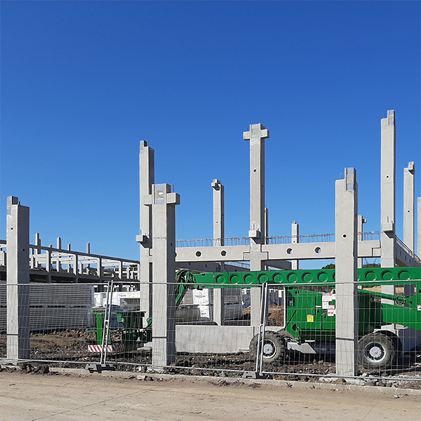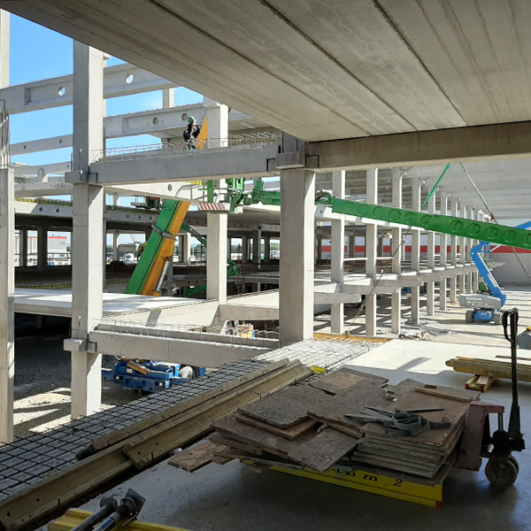 A 20.000 m² alapterületű épületben két épületrész különíthető el: 13.600 m² csarnokrész 18×21,6 m raszterhálóval és 6.400 m² - részben háromszintes - irodarész. Az épület 205 db pillérből épült fel, amihez 392 db födémgerenda és 395 db tetőtartó csatlakozik. A szintosztó födémeket 12.000 m² BP-16 és MF-265 együttesen alkotja. Az iroda épületrészben található 4 db lépcsőházban előregyártott vasbeton lépcsőpihenők és lépcsőkarok kerültek elhelyezésre, a homlokzaton hőszigetelt lábazati elemek készültek 398 fm hosszon. Az építkezésre kiszállított vasbeton elemek súlya összesen 11.600 tonna.