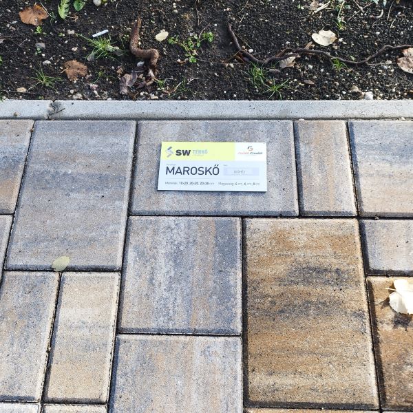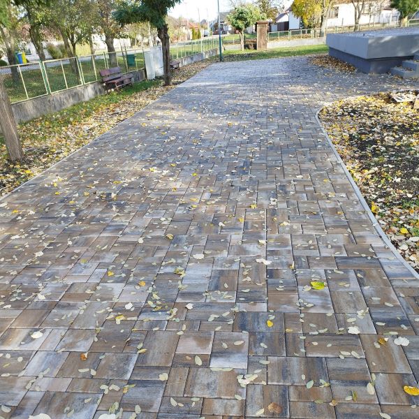 A sajószögedi szabadidőpark burkolásáshoz 680 m² dióhéjszínű Maroskő térkövet használtak, amely minden évszakban harmóniában van a természet váltakozó színeivel.