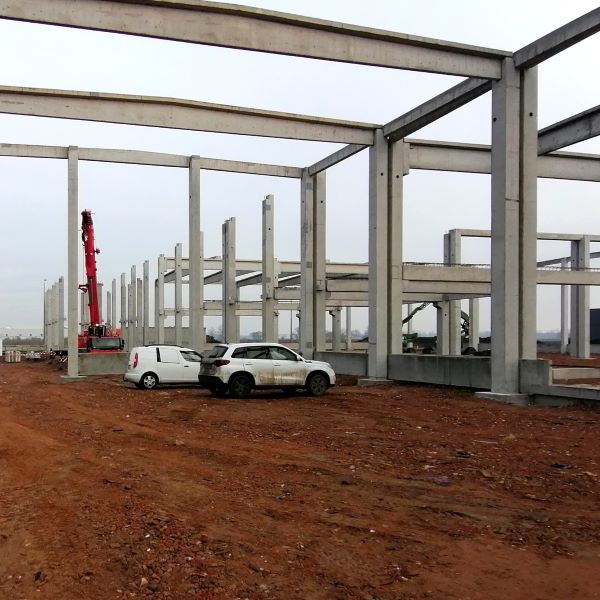 Cégünk egy élelmiszer kereskedéssel foglalkozó cég épületének vasbeton vázszerkezeti elemeinek előregyártásában vett részt. Az épület alapterülete ~ 4.500 m², mely két részből tevődik össze: csarnok és iroda. A csarnok 2 nagyobb és 1 kisebb különálló hajóból áll, tetőszerkezete 17m és 24m fesztávval rendelkezik. Mind az iroda, mind a csarnok részen kivitelezésre került egy-egy födémszint is, összesen 510 m², MF körüreges panel és BP bordás panel felhasználásával. Elhelyezésre került 4 db dokkoló is, mely az érkező szállítóautók fogadására szolgál. A homlokzaton 320 fm hőszigetelt lábazati panel található. Az építkezésre kiszállított vasbeton elemek súlya összesen 1.810 tonna.