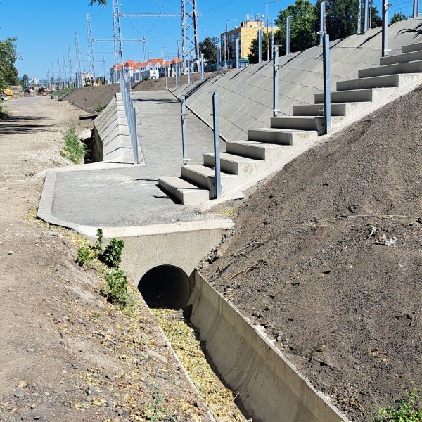 A Budapest–Belgrád vasútépítési beruházás Ferencváros állomás és Soroksár közötti szakaszának kivitelezése a MÁV Zrt. beruházásában 2023-ban vette kezdetét. A fejlesztés a MÁV Zrt. 150-es számú, Budapest–Kunszentmiklós−Tass–Kelebia vasútvonalának részeként valósul meg a vágányok, a felsővezeték-hálózat, az állomások, valamint a szintbeni és különszintű csomópontok teljes körű újjáépítése mellett. Cégünk a vonatkozó létesítmények víztelenítési részfeladatai kapcsán látta el a kivitelezőket előregyártott vasbeton vízelvezető rendszerekkel.