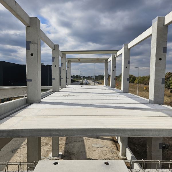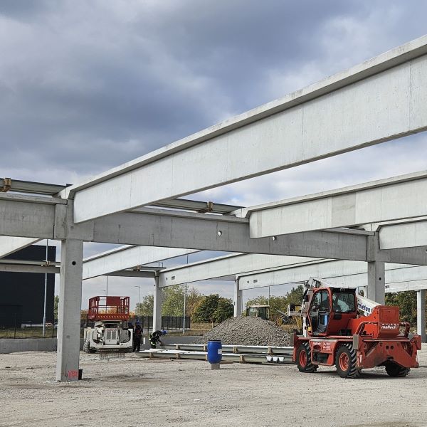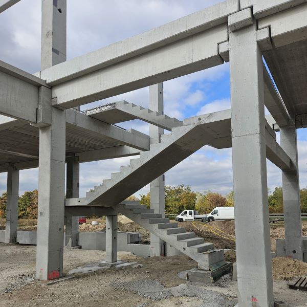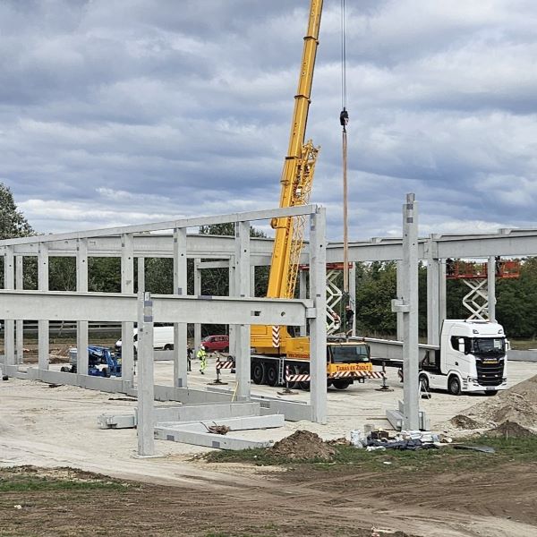 Vállalatunk egy élelmiszer-csomagolópapír gyártó cég új létesítményének előregyártásában, valamint építésében vett részt. A több, mint 4.600 m² alapterületű épület tetőszerkezetét 30 db feszített tetőgerenda alkotja és három egységből tevődik össze: gyártócsarnok, raktárcsarnok és iroda. A gyártócsarnok és raktárcsarnok 22 m fesztávval rendelkező hajókból áll, a két részt egyrétegű lábazati panelek dilatálják el egymástól. Az északnyugati részen helyezkedik el az emeleti iroda, ahol a 220 m² körüreges födémpanelt 20 db födémgerenda fogadja. Az irodaszintre való feljutást az előregyártott lépcsők biztosítják. A csarnok homlokzatán 288 fm hőszigetelt lábazati panel található. Az építkezésre kiszállított vasbeton elemek súlya összesen 1.260 tonna.