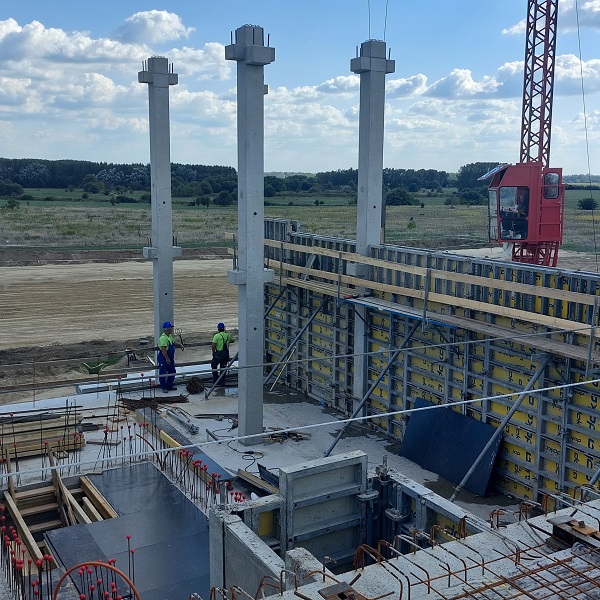 Az épület előregyártott vasbeton szerkezetének gyártmánytervezését, gyártását, szállítását és helyszíni szerelését végeztük. A főépülettel párhuzamosan gyártottuk és szereltük a TGK mosó és a Hulladéktároló kisebb épületeit is. Az „L” alaprajzú főépület két szára egy 30 és egy 36 méteres kéthajós szerelő csarnok, mely közrefogja az 1.000 m² alapterületű, háromszintes, TT panelek elhelyezésével kialakított irodarészt. Szerkezetépítés során elhelyezésre került 119 db pillér, 9 db „T” főtartó, 47 db „T” szelemen, valamint 188 db TT panel és 17 db lépcsőkar. Az emeleti/tető szinti TT panelek elhelyezéshez az alatta lévő szint felbetonozására és csatlakozó monolit falak elkésztésére is szükséges volt, így a szerkezet kivitelezése folyamatos együttműködéssel valósult meg a monolit szerkezetet kivitelezőkkel. Az összes legyártott és helyszínre szállított szerkezeti elem súlya 3.500 tonna.